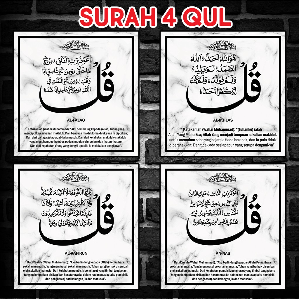 4 qul kufic surah islamic metal wall art,surah al ikhlas,al falaq,al kafirun,al nas, metal wall hangings,metal decor,islamic decor, islam melisa kvk jan 5, 2021 snelle levering en heel mooi verpakt. Black magic , evil eye , nazirah , shifa , ruqyah , jinn. Untuk memudahkan atau memendekan orang merujuk kepada ayat 3 qul atau surah 3 qul. So we should recite the whole quran, but some parts in the quran have many virtues and have a great impact on allah's human faith. These 4 quls are small surahs from last part of holy quran. It is available to download for free on mobile platforms. He begots not , nor was he begotten; Below are the four qul surahs in action along with translations. Its a sunnah tradition of reading this sura over the sick or before sleeping. Below are the transliteration and english translation of the quls: 2) membacanya, terlepas dari syirik, terjauh dari godaan syaitan dan terlepas dari peristiwa yang mengejutkan. The 4 qul (char qul) are short yet powerful surahs in the holy qur'an which hold immense rewards and benefits. The four qul surahs are four selected surahs in the holy quran known as protection surahs.