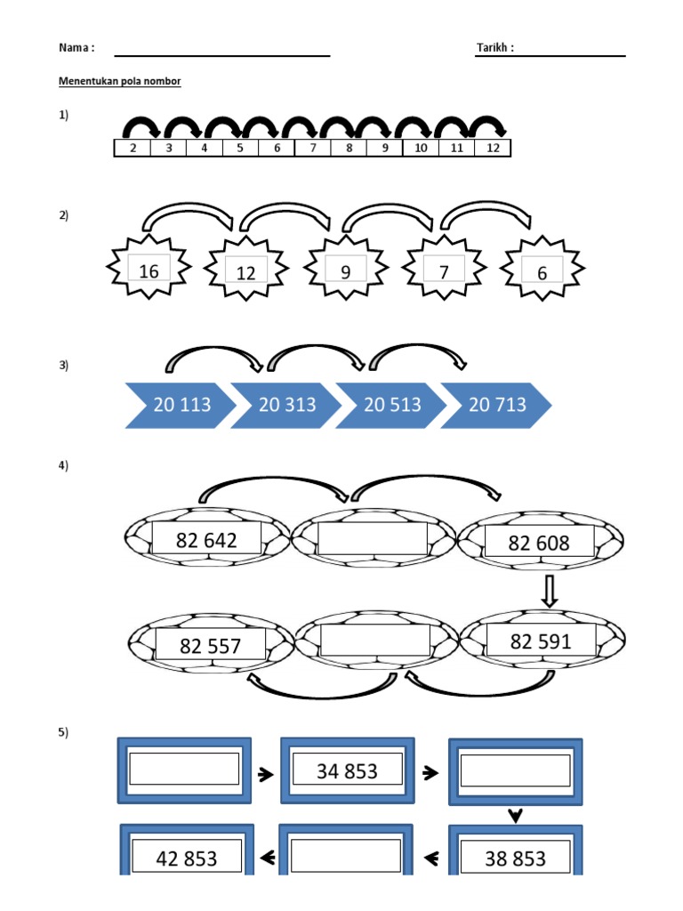 Pola Nombor Worksheets And Online Exercises from files.liveworksheets.com Urutan ini bermula dengan 1, 1 dan setiap selepas sebutan (term) yang kedua, diperolehi dengan menambah dua sebutan (term) sebelumnya. Latihan pola nombor tahun 1. Berikan 5 nombor sebelum nombor yang pertama berdasarkan polanya. Ada 20 gudang lagu asas pola nombor tahun 1 terbaru, klik salah satu untuk download lagu mudah dan cepat. Susunkan nombor mengikut tertib menurun. Pola nombor matematik tahun 4 buku teks muka surat 11 tertib menaik = naik tangga sekolah tertib menurun = turun tangga. Mengenal pasti pola bagi siri nombor yang diberi. Related posts to soalan matematik tahun 1 nombor bulat.